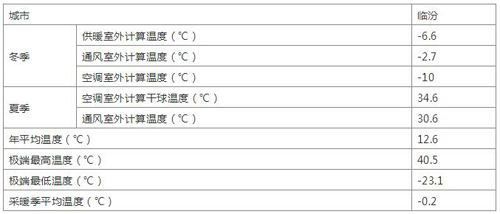 乡宁县位于位于山西省西南端,属暖温带大陆性气候,年均气温10℃左右,一月平均温度-6℃,年降雨量600毫米,无霜期150天。依据《全国民用建筑供暖通风与空气调节设计规范》(GB50736-2012)室外环境计算温度的要求,临汾当地的室外气象参数如下表所示: