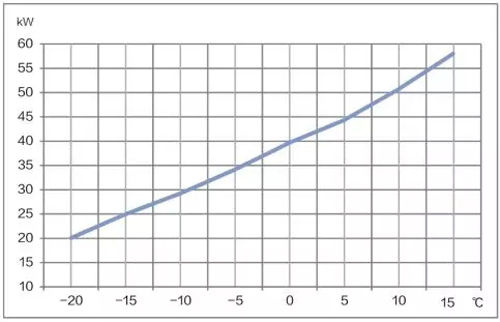 超低温热泵采暖机组制热量随环境温度的变化曲线如下图所示: